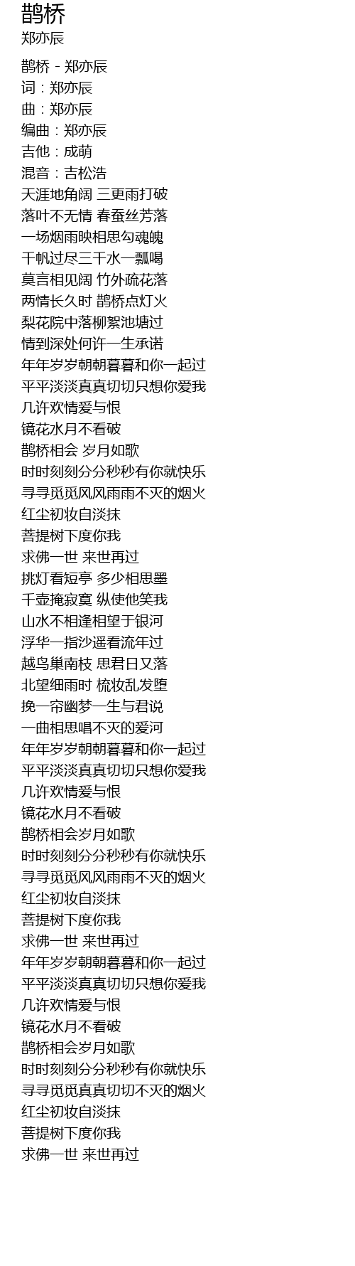 | [00:00.49] | 鹊桥 - 郑亦辰 |