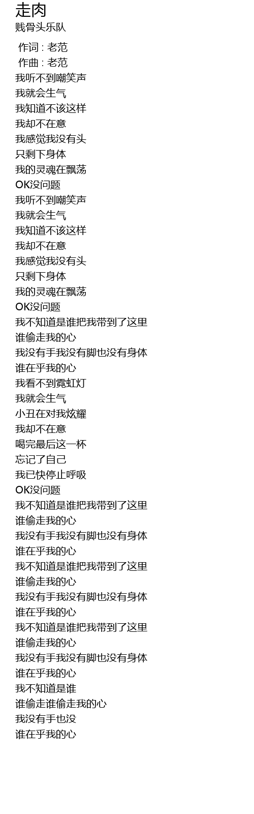 | [02:32.710] | wǒ méi yǒu shǒu wǒ méi yǒu jiǎo yě méi yǒu shēn tǐ |