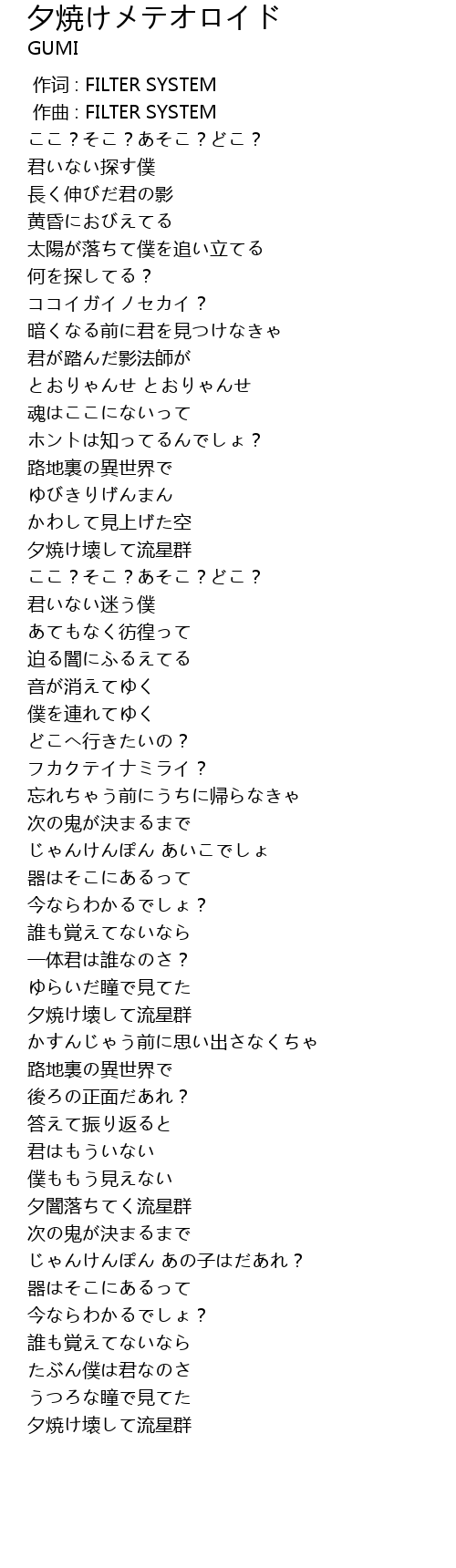 | [03:02.831] | 夕焼け壊して流星群 |