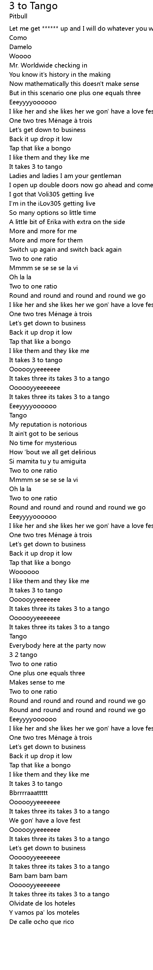 | [03:25.01] | It takes three its takes 3 to a tango |