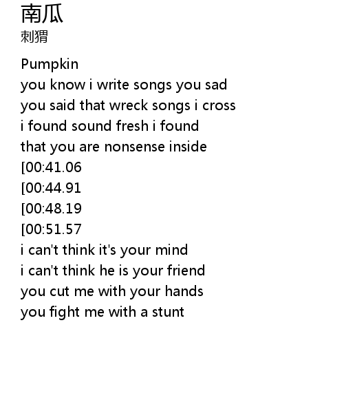 | [00:55.71][00:41.06] | a pumpkin is a new sense |