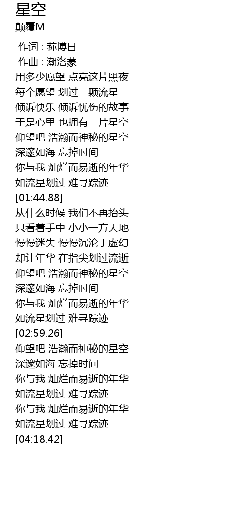 | [01:12.72] | 仰望吧 浩瀚而神秘的星空 |