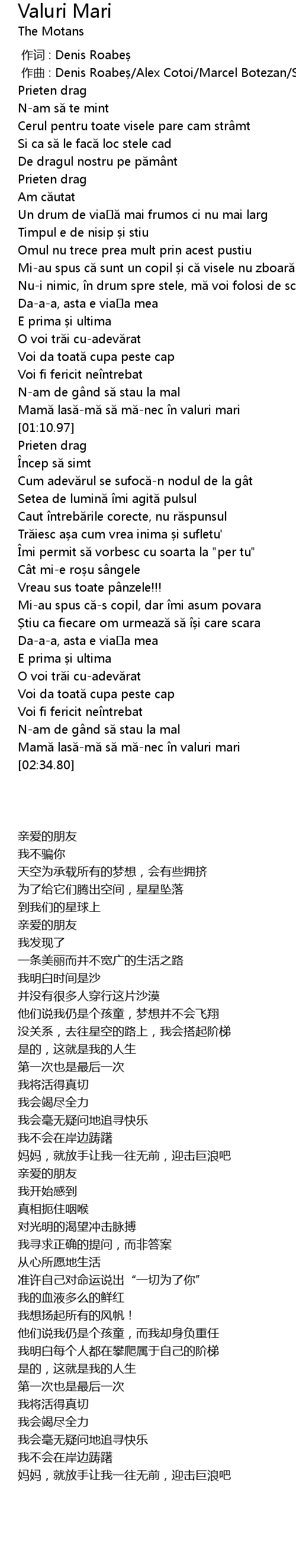 | [02:30.43] | Mamă lasă-mă să mă-nec în valuri mari |