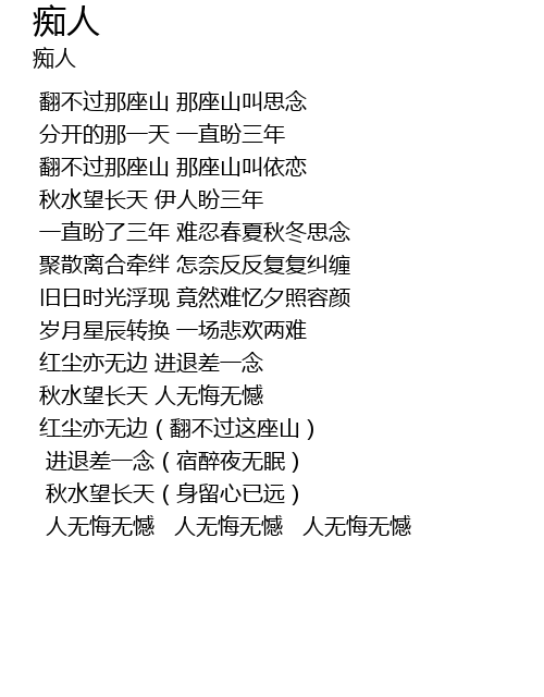 | [04:57.58] | rén wú huǐ wú hàn rén wú huǐ wú hàn rén wú huǐ wú hàn |