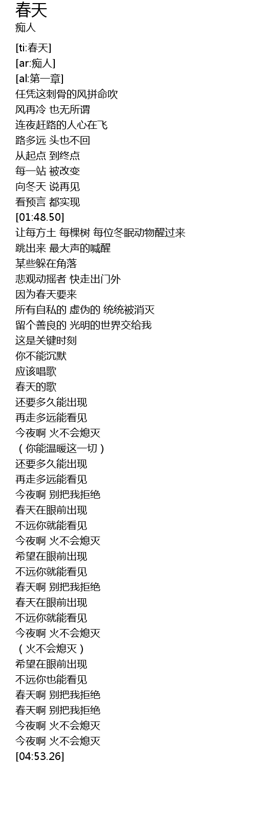 | [04:31.64] | 春天啊 别把我拒绝 |