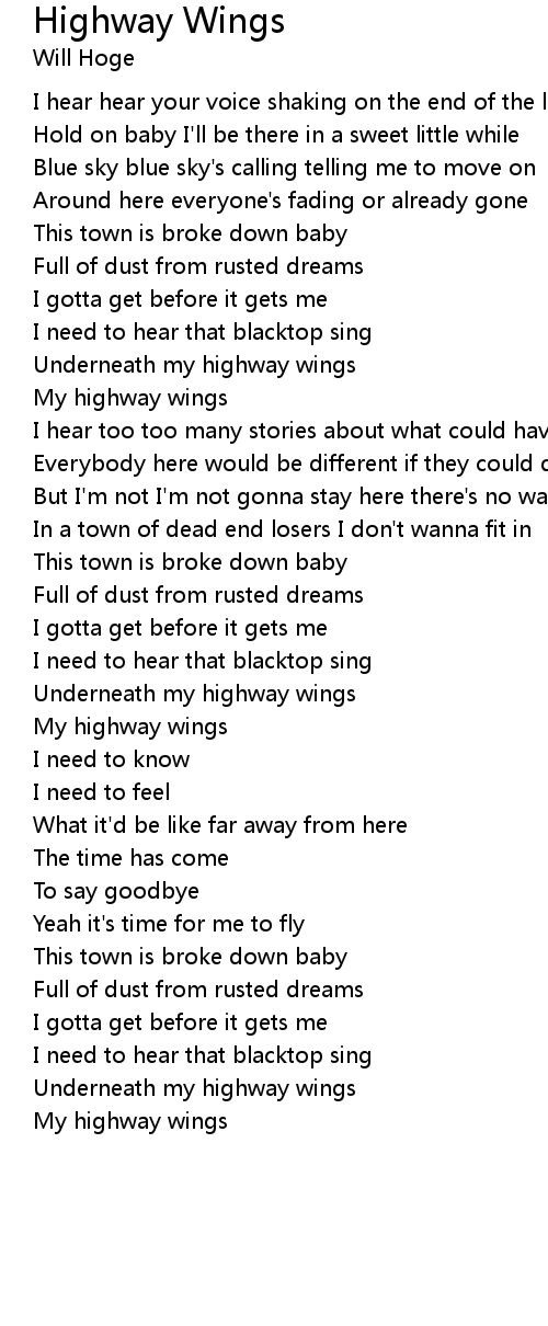 Underneath my highway wings |