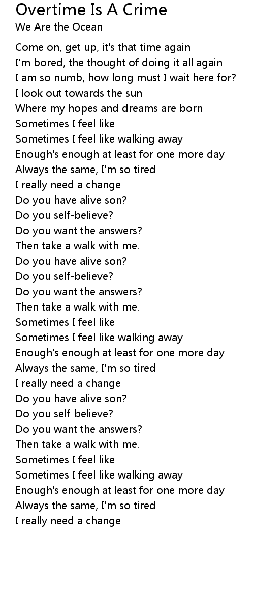 Sometimes I feel like walking away |
