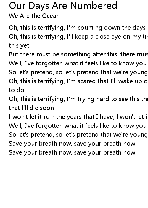 Oh, this is terrifying, I'm counting down the days 'til I end up in the ground |