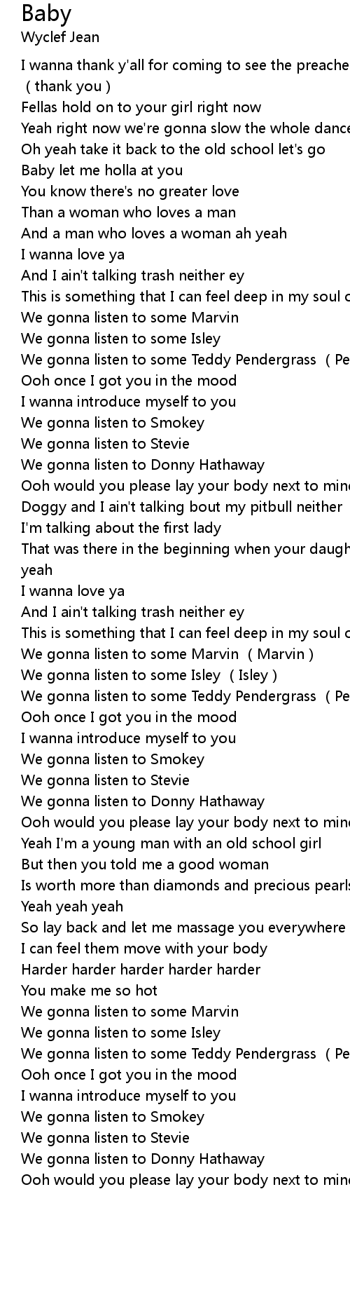 | [03:10.600] | We gonna listen to some Teddy Pendergrass (Pendergrass) |