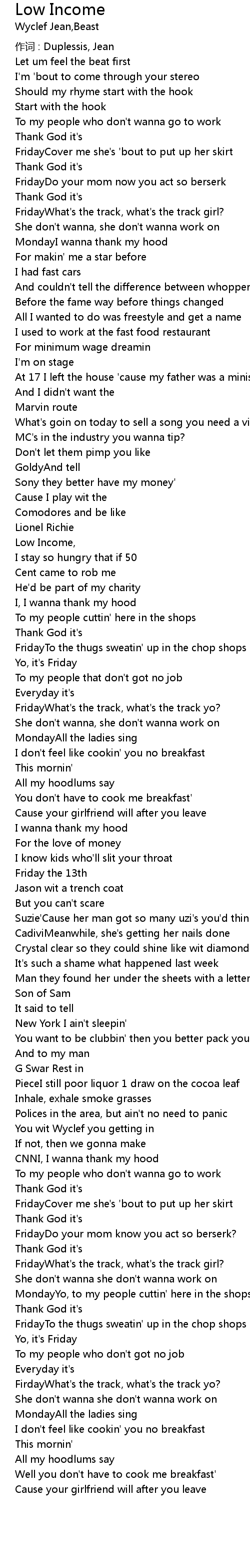 | FridayTo the thugs sweatin' up in the chop shops | |