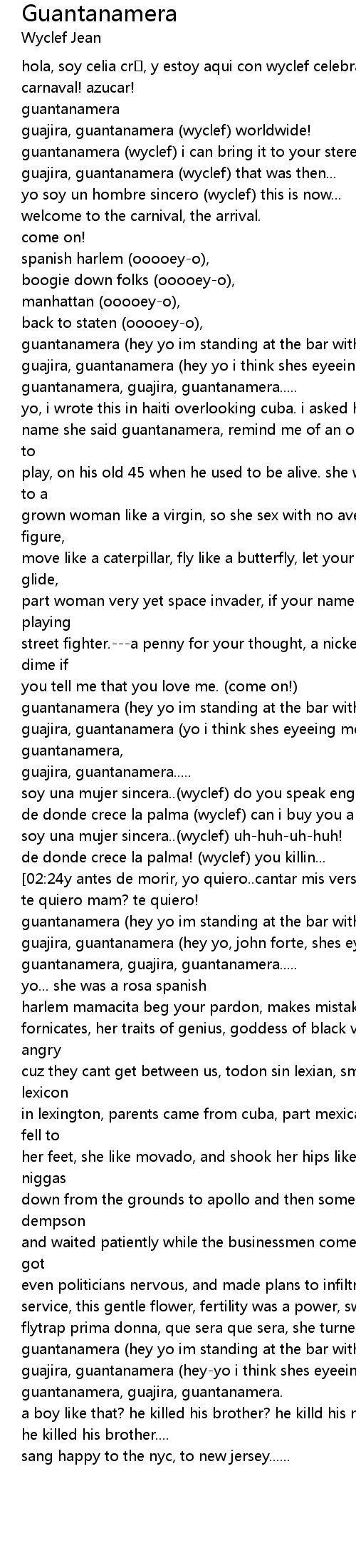 | [00:18] | guajira, guantanamera wyclef that was then... |