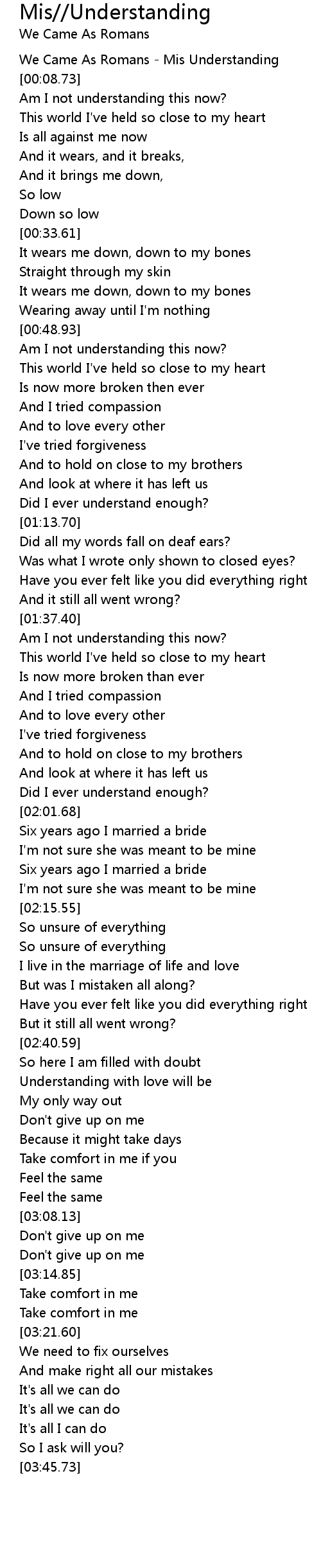 We Came As Romans - Mis Understanding |