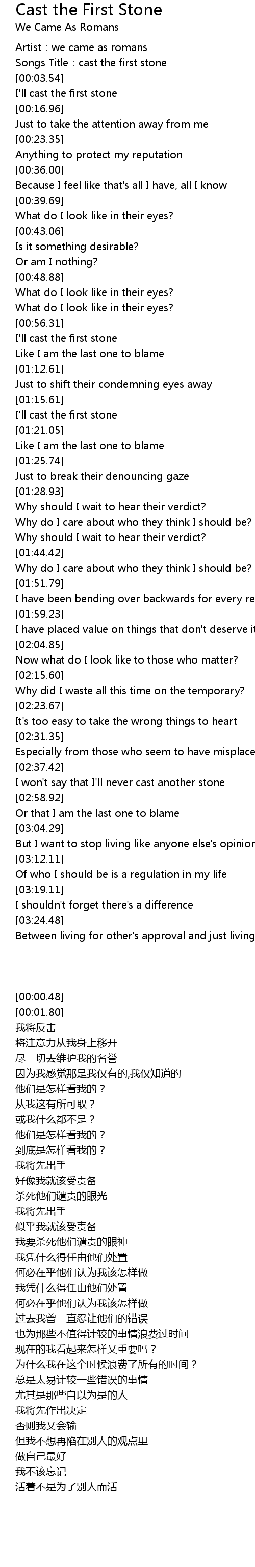 | [02:45.61] | I won't say that I'll never cast another stone |