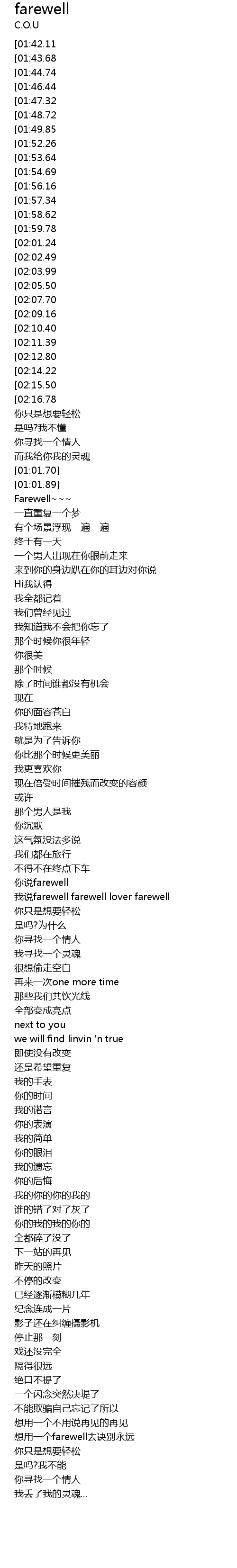 | [01:39.45] | 我说farewell farewell lover farewell |