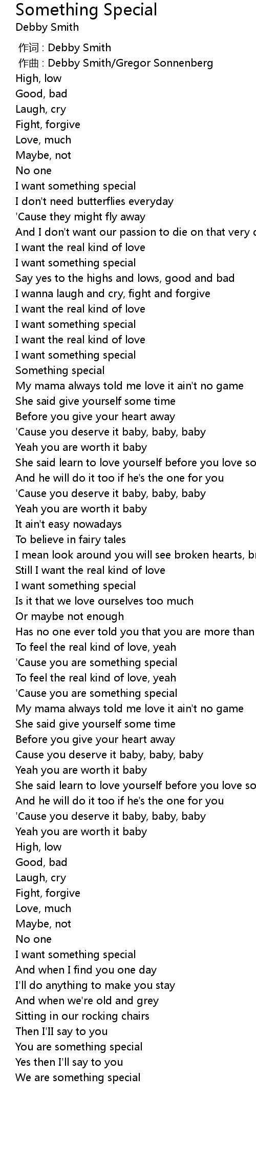 | [00:00.000] | 作词 : Debby Smith |