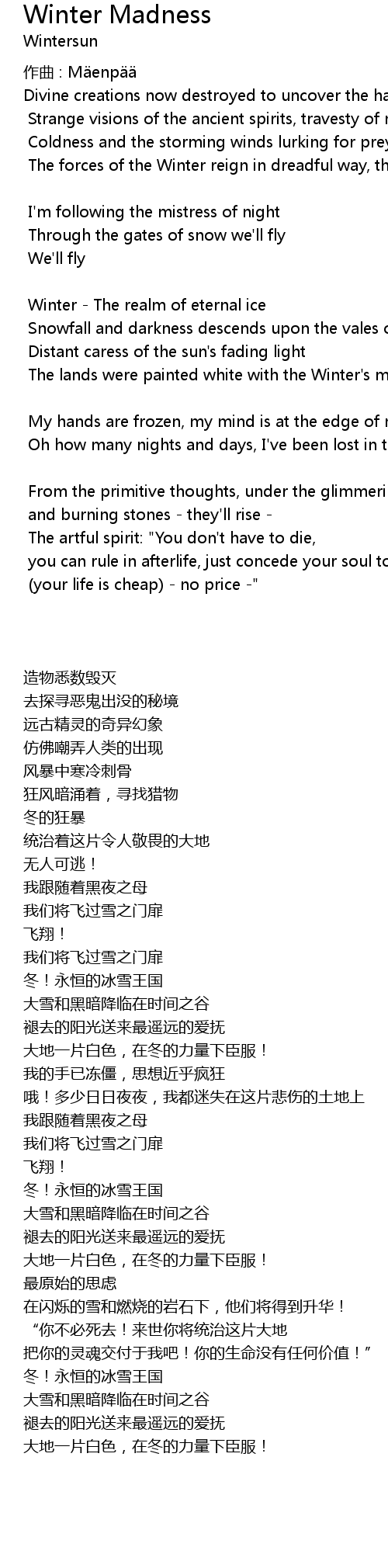 | Snowfall and darkness descends upon the vales of time | |