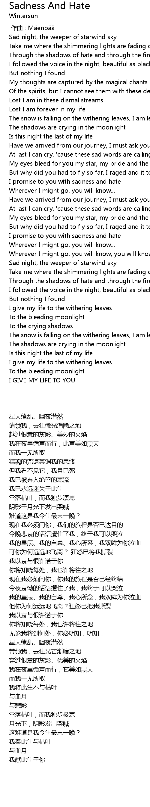 | [00:00.00] | 作曲 : Mäenpää |