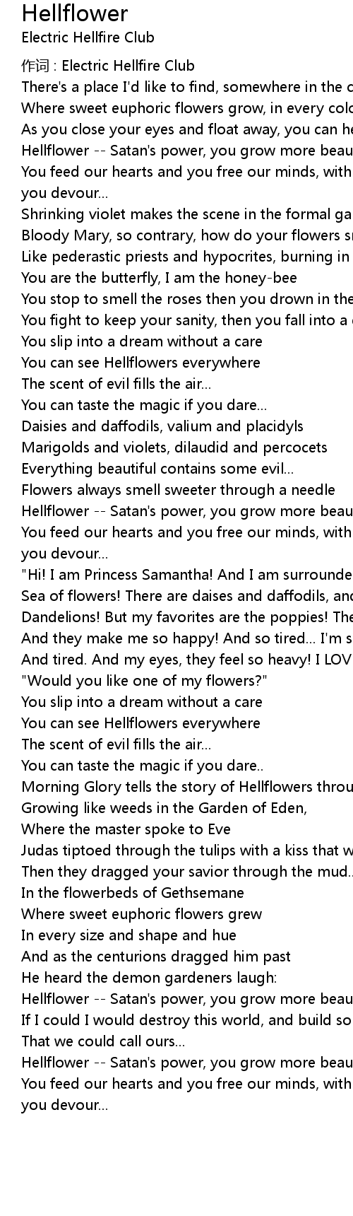 | Hellflower Satan' s power, you grow more beautiful by the hour | |