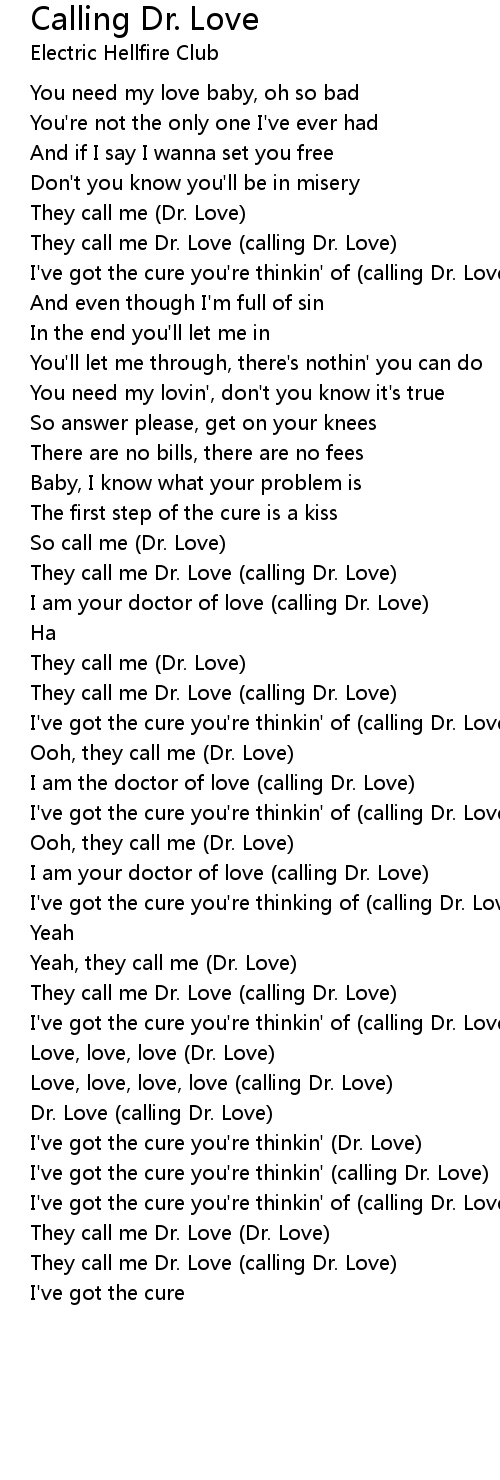 I've got the cure you're thinkin' of (calling Dr. Love) |