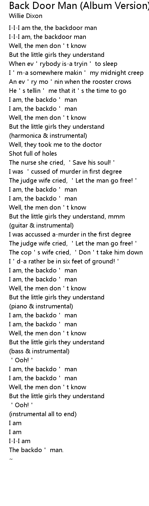 | Song | Back Door Man (Album Version) |