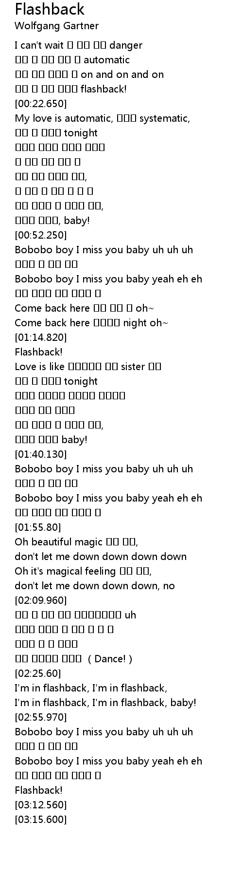 | [01:00.20] | Bobobo boy I miss you baby yeah eh eh |