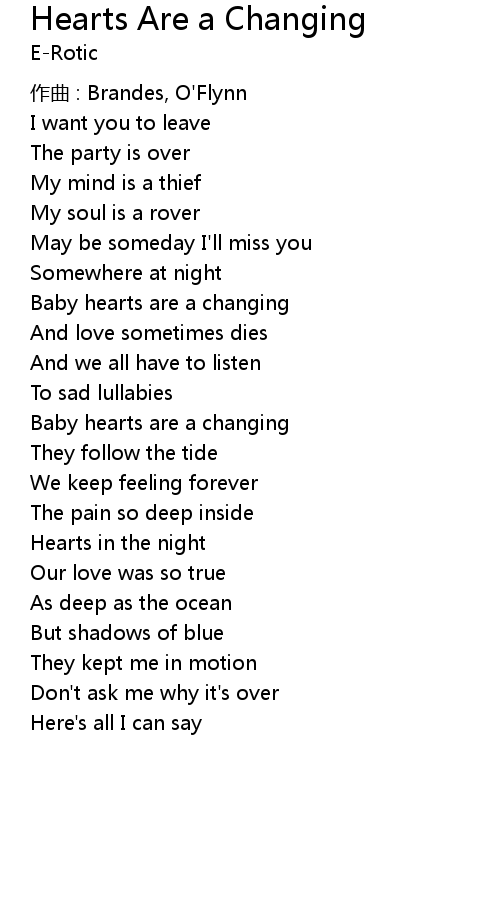| Song | Hearts Are a Changing |