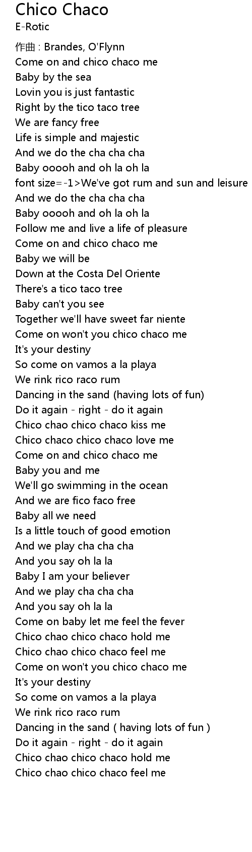 | Come on won't you chico chaco me | |