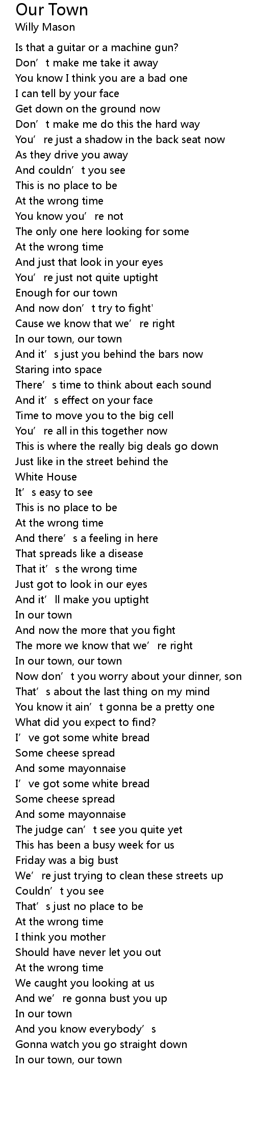 | In our town, our town | |