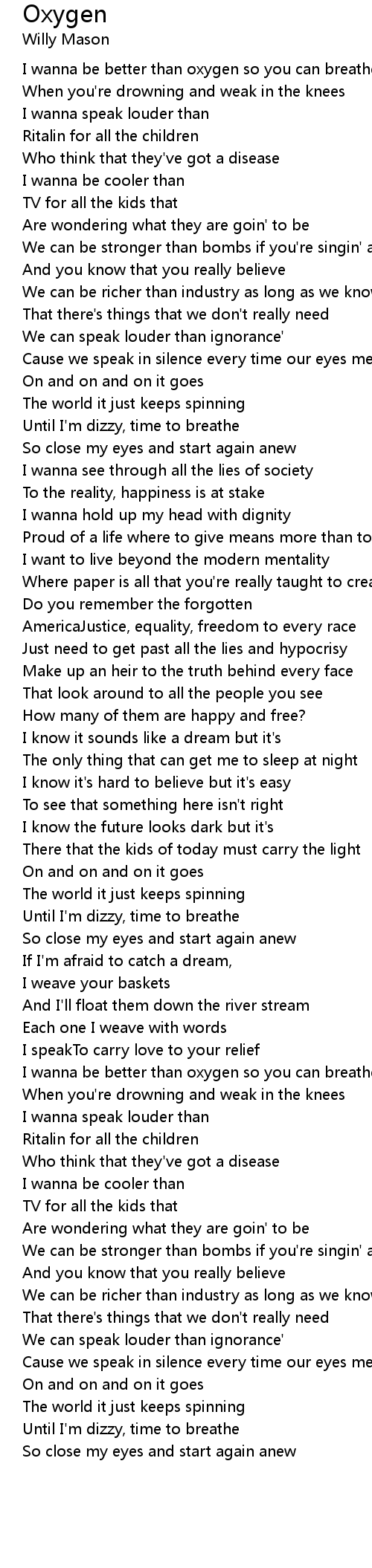 I wanna be better than oxygen so you can breathe |