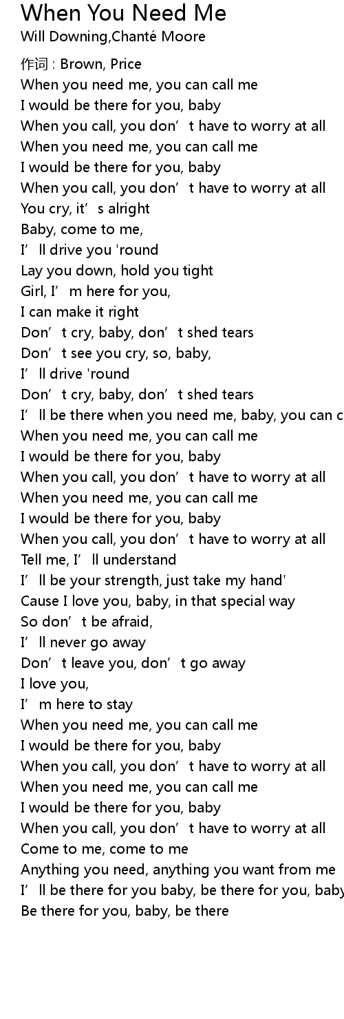 | I' ll be there when you need me, baby, you can call | |