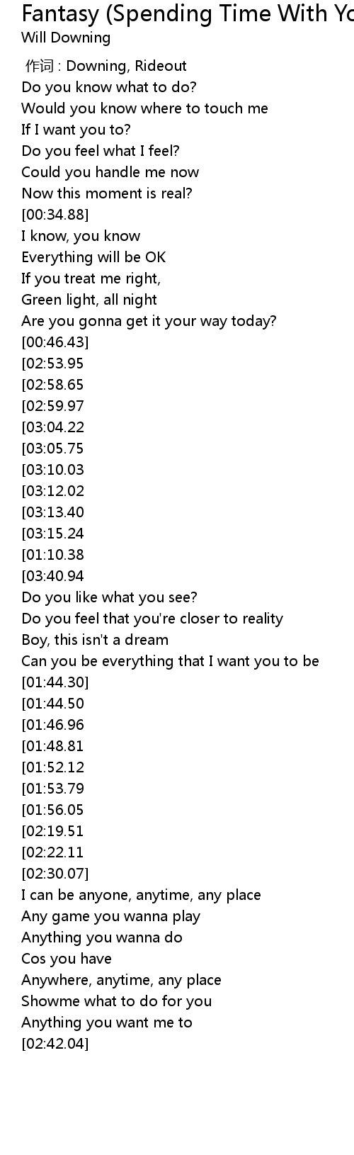 | [03:38.27][03:15.24][02:17.45][01:07.81] | For me to be your fantasy |