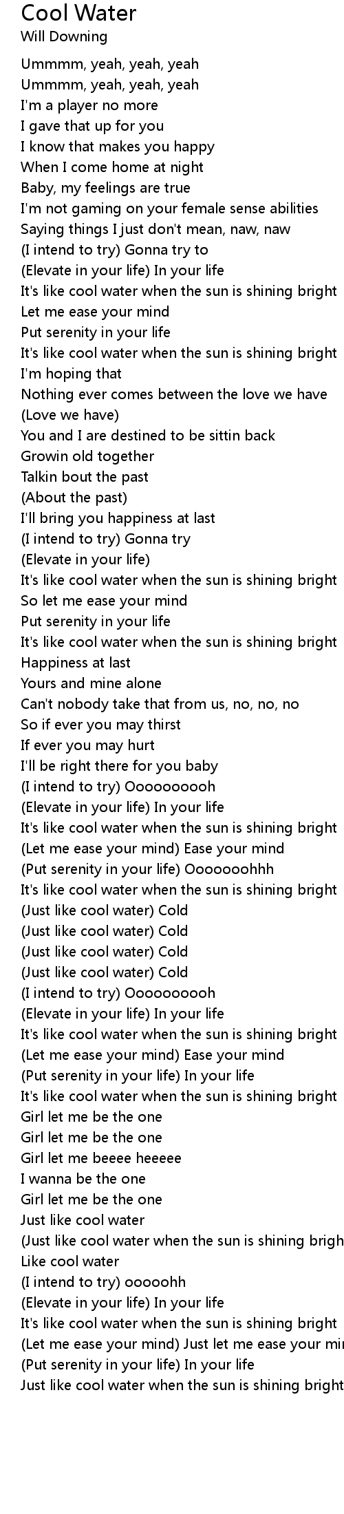 (Just like cool water when the sun is shining bright) |
