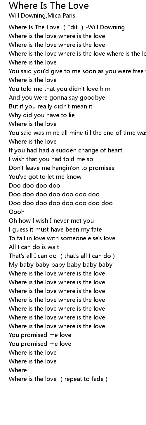 | [00:00.00] | Where Is The Love Edit Will Downing |