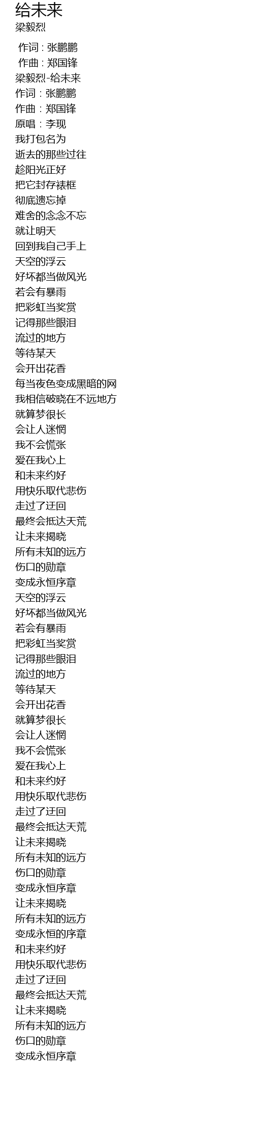 | [00:00.00] | 梁毅烈-给未来 |