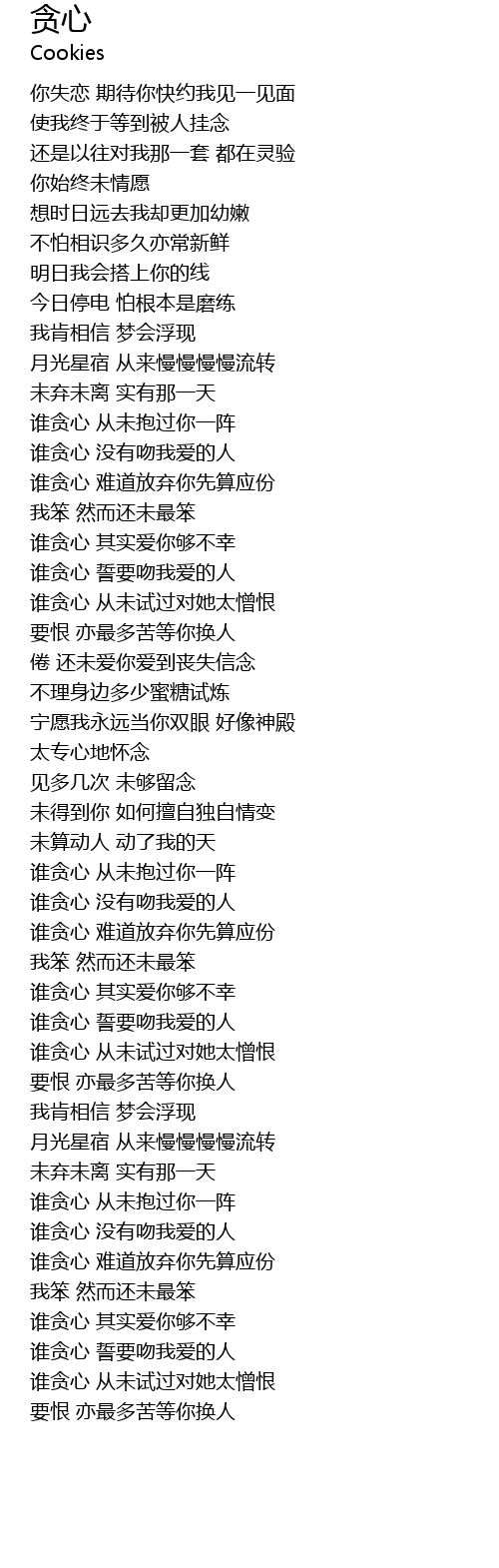 | [03:20.17] | 谁贪心 没有吻我爱的人 |