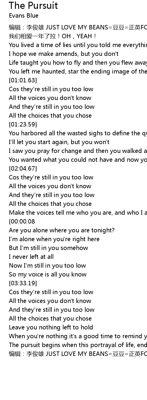 | [04:03.22] | The pursuit begins when this portrayal of life, ends |