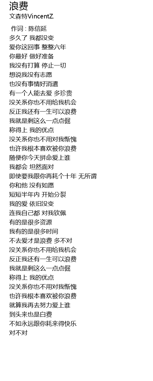 | Song | 浪费 |