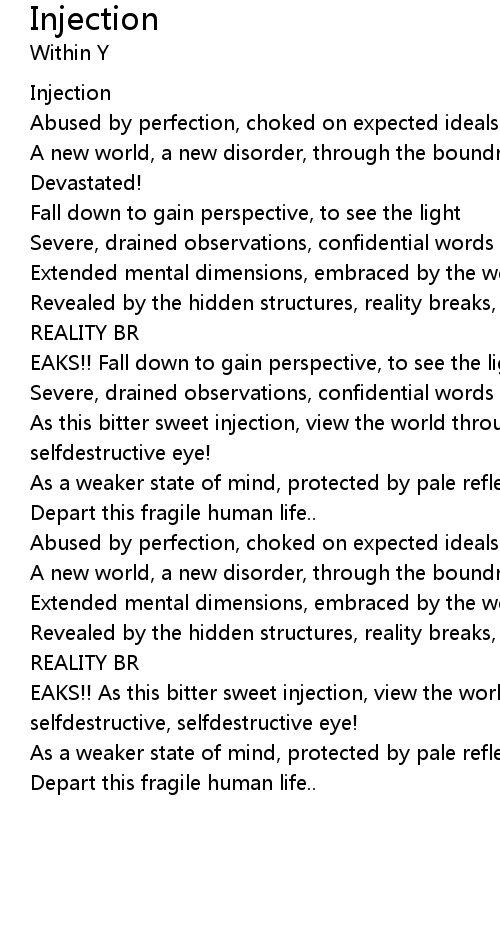 EAKS!! As this bitter sweet injection, view the world through the selfdestructive, selfdestructive eye! |