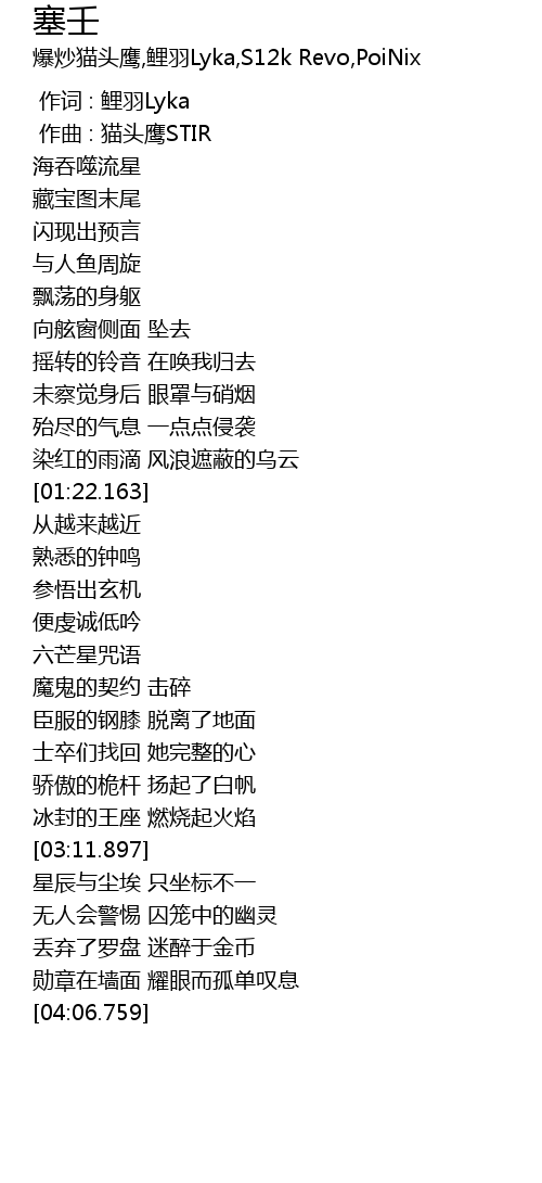 | [00:00.000] | 作词 : 鲤羽Lyka |