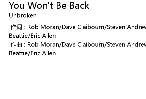 | Song | You Won't Be Back |