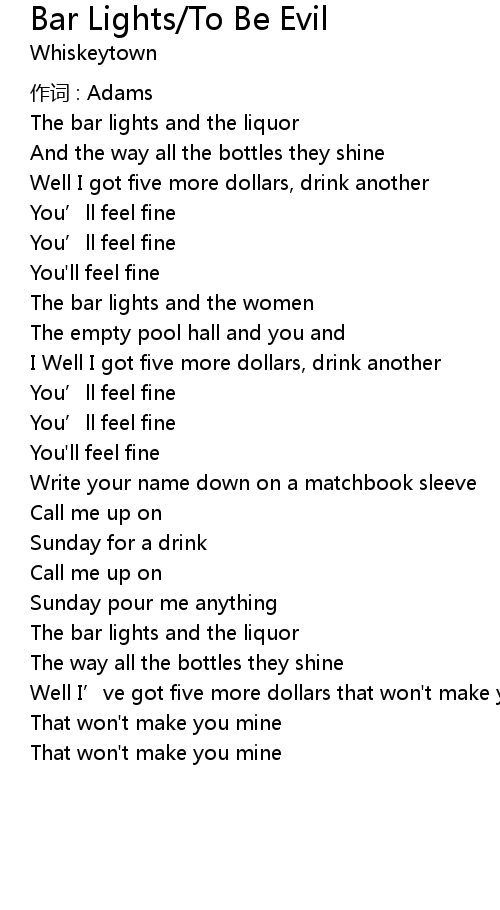 | Song | Bar Lights/To Be Evil |