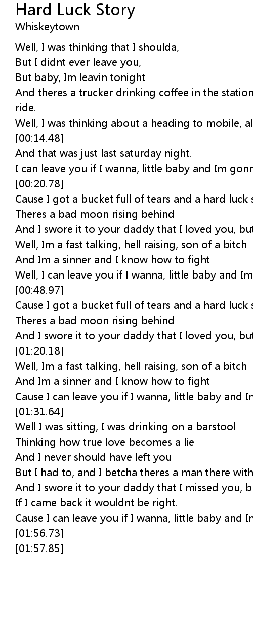 Cause I got a bucket full of tears and a hard luck story |