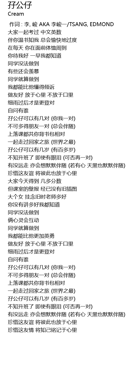 | [00:00.00] | 作词 : 李, 峻 AKA 李峻一/TSANG, EDMOND |