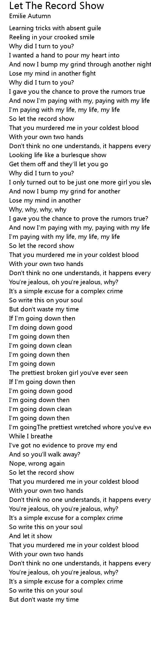 I only turned out to be just one more girl you slew |