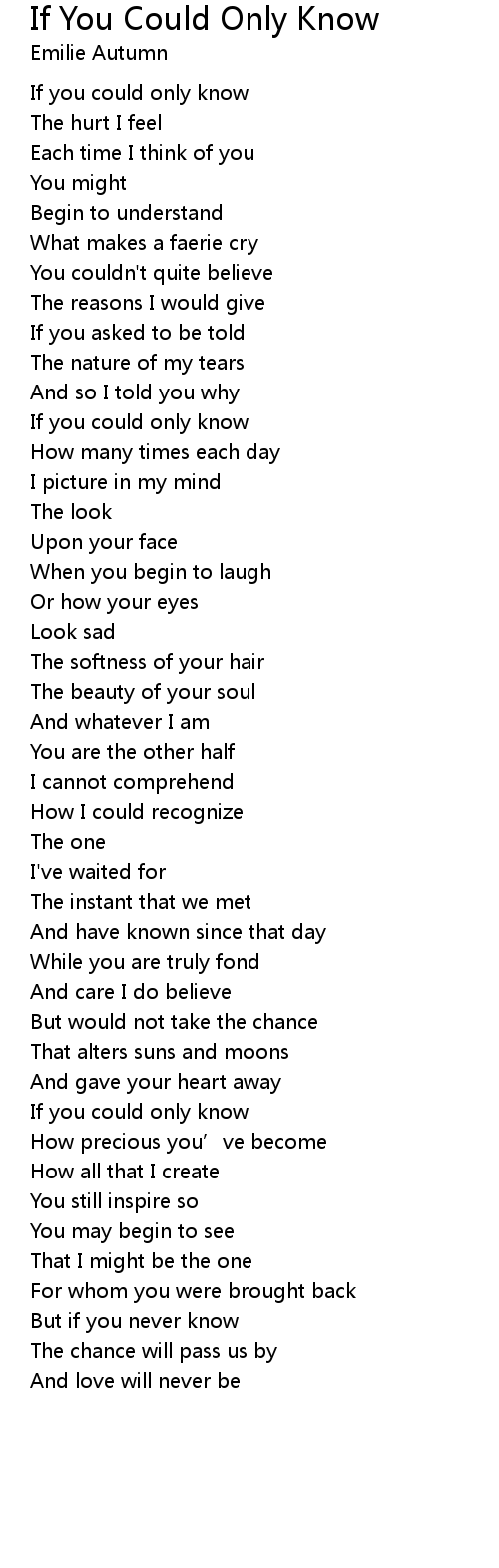 | If you could only know | |
