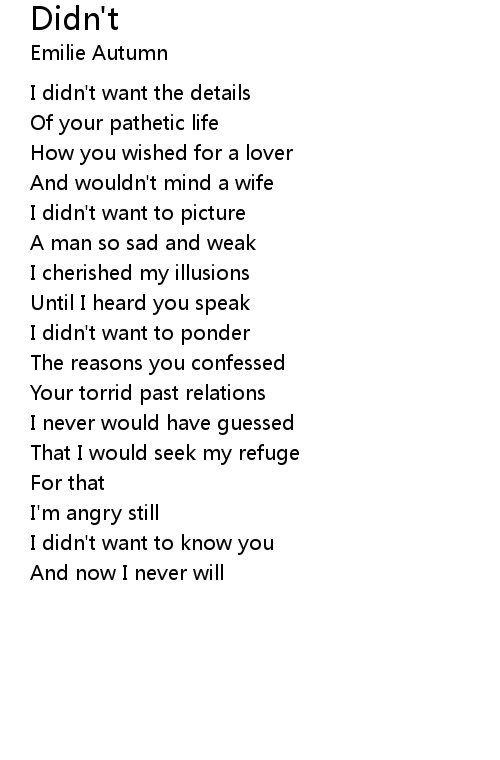 | I didn't want to know you | |