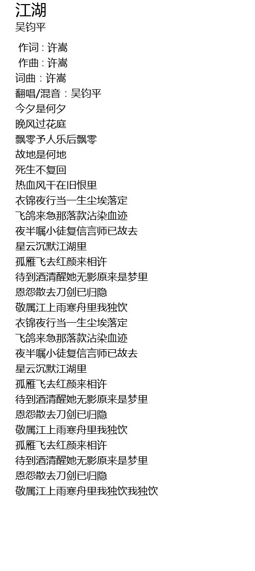 | [02:44.650] | xīng yún chén mò jiāng hú lǐ |