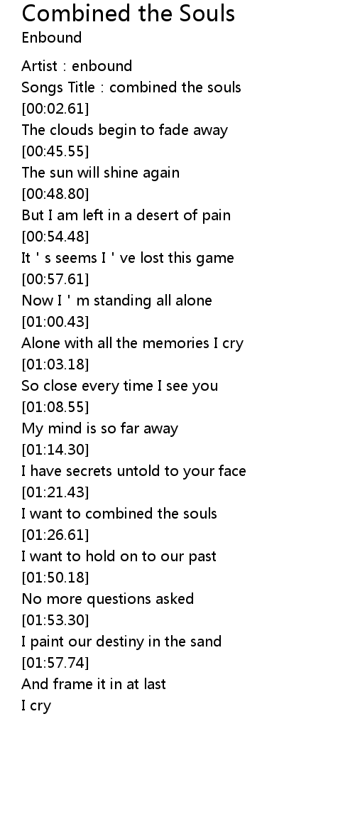 | [00:01.61] | Songs Title:combined the souls |