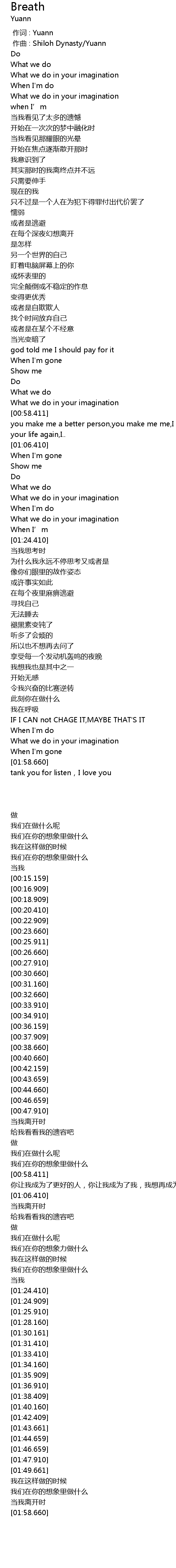 | [00:00.000] | zuo qu : Shiloh Dynasty Yuann |