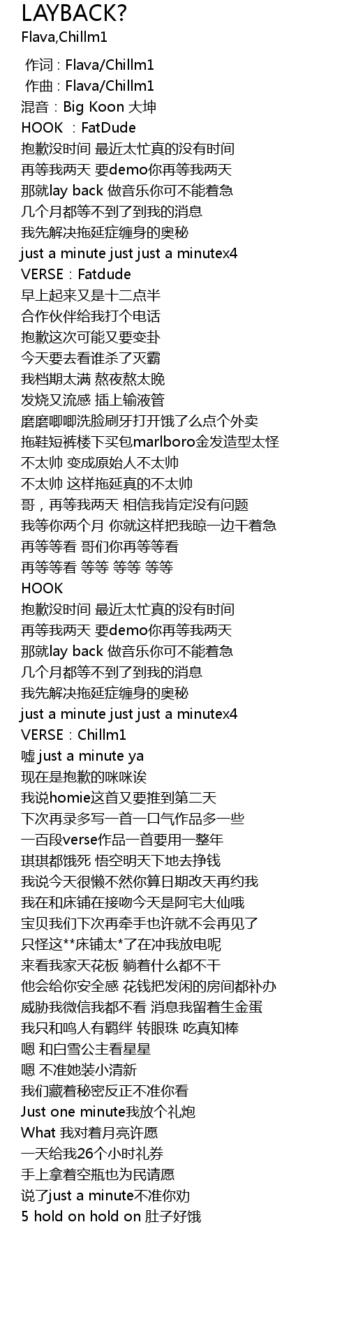 | [01:51.940] | 那就lay back 做音乐你可不能着急 |
